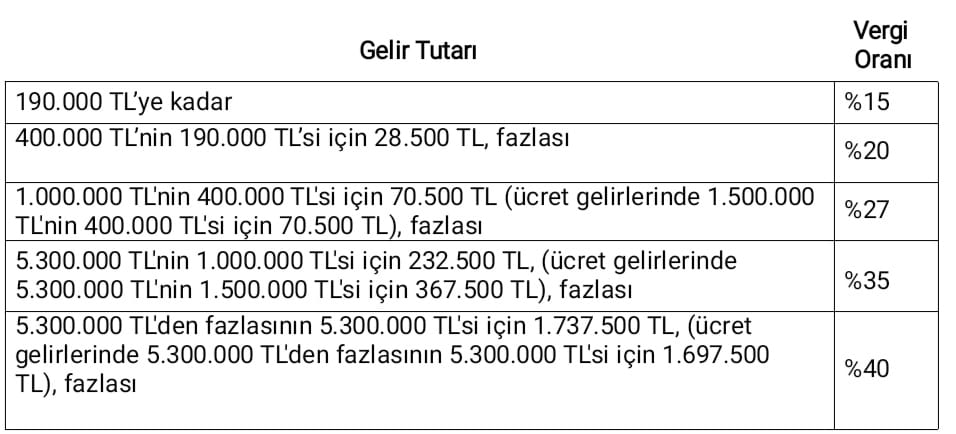 Bu tarife, ücret gelirleri ile diğer gelir unsurları arasında belirli eşiklerde farklılıklar içermektedir.