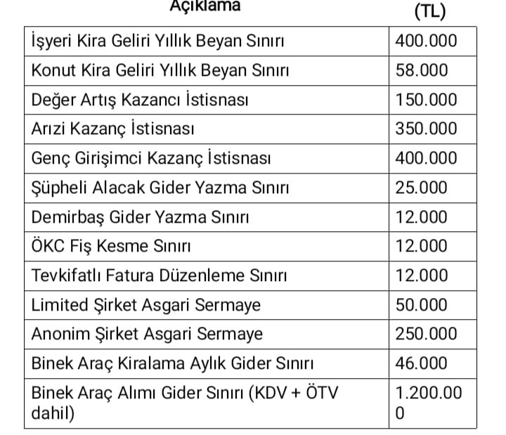 2026 takvim yılı gelirlerinin vergilendirilmesinde uygulanmak üzere belirlenmiştir.