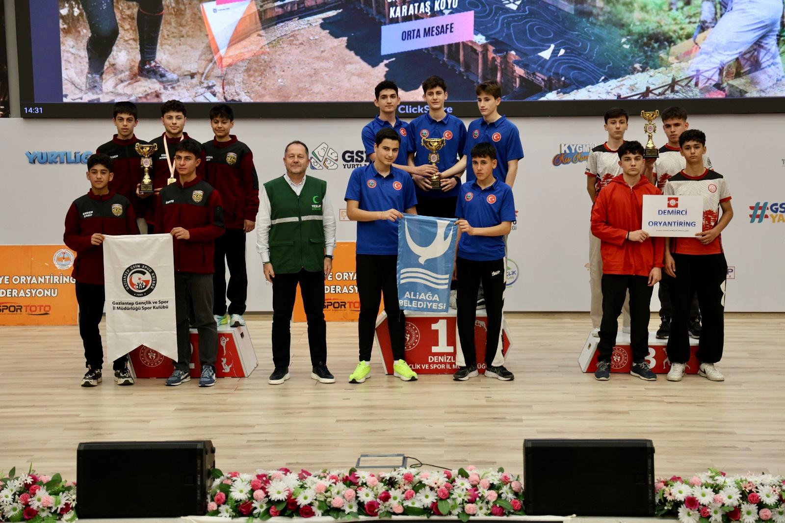 Aliağalı oryantiringcilerden bireysel olarak ; Eymen Vatansever E16 A kategorisinde, Kayra Mete Sakaoğlu ise E20 A kategorisinde Türkiye üçüncüsü olarak Mayıs ayında Kütahya’da yapılacak Milli Takım Seçme yarışmalarına katılmaya hak kazandı. Veli Emre, E 35 kategorisinde sprint etabında, orta mesafede ve uzun mesafede Türkiye ikincisi, Tolga Hasançebi E 40 kategorisinde sprint etabında Türkiye birincisi, Çınar Kırıkkaya E 18 B kategorisinde üç etabın genelinde Türkiye ikincisi oldu. Aliağa Belediyesi Cimnastik Antrenörü Büşra Altun ise K 21 A kategorisinde üç etabın genelinde Türkiye birincisi oldu.