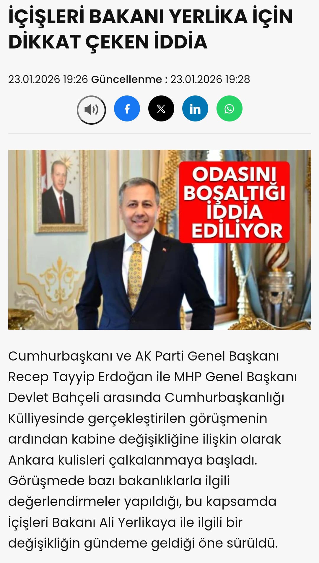Haber merkezimizin değerlendirip yayınladığı 23.01.2026 tarihli iddianın bu gece doğruluğu kanıtlandı.