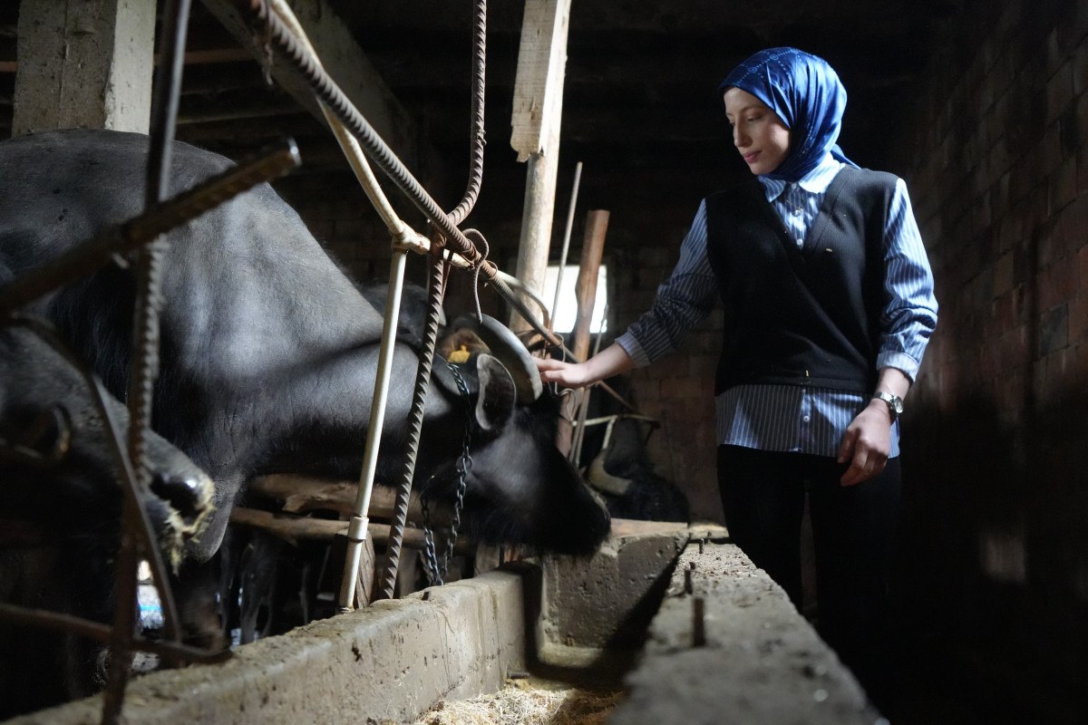 Sattığı ürünlerle gelir elde eden genç kadın, manda sütü, yoğurdu ve yağını Türkiye'nin farklı illerine gönderiyor.