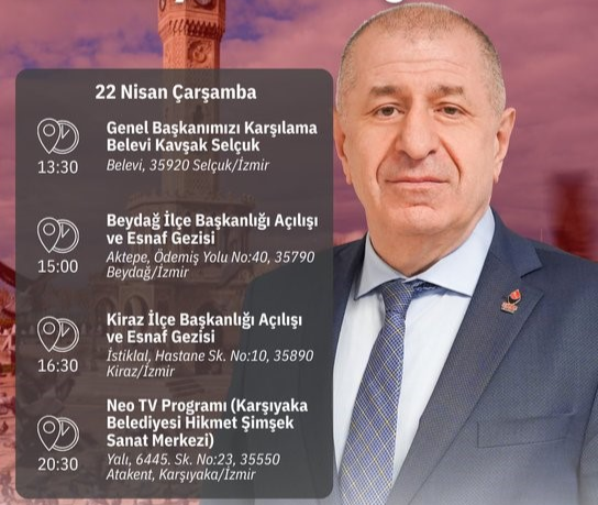 Yarın 22 Nisan Çarşamba günü gerçekleştireceği İzmir Programında esnaf ve vatandaşlarla bir araya gelecek olan Özdağ'ın, İzmir'de önemli açıklamalar yapması bekleniyor...